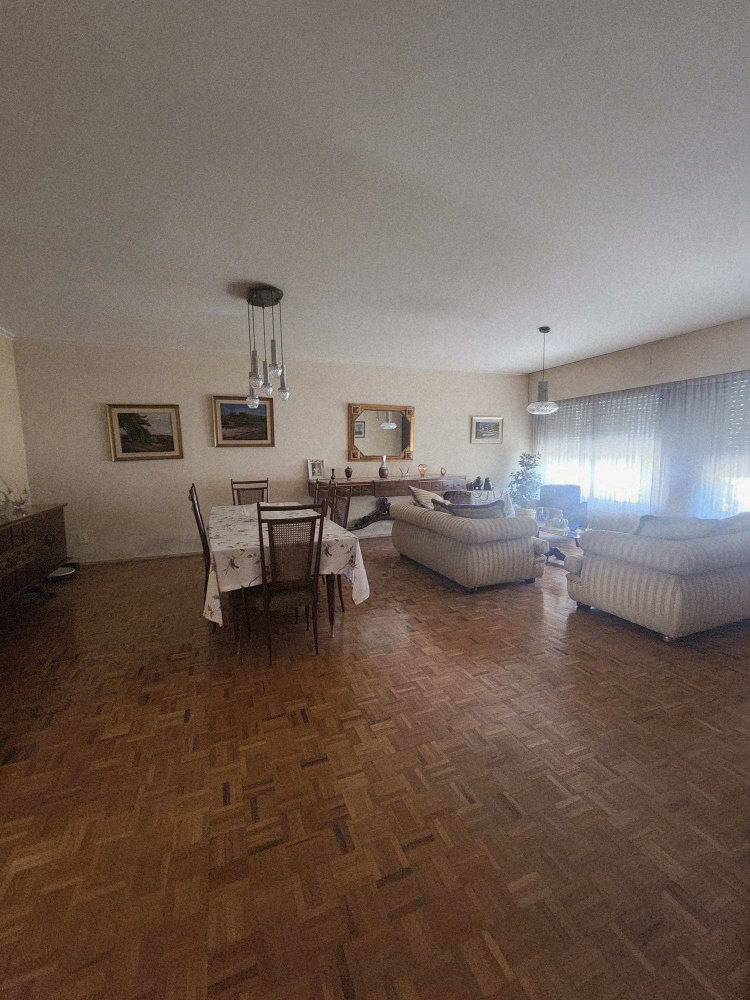 Living comedor con ventanales de aluminio al frente, lo que garantiza buena iluminación natural, acompañado de pisos de parquet que aportan calidez.